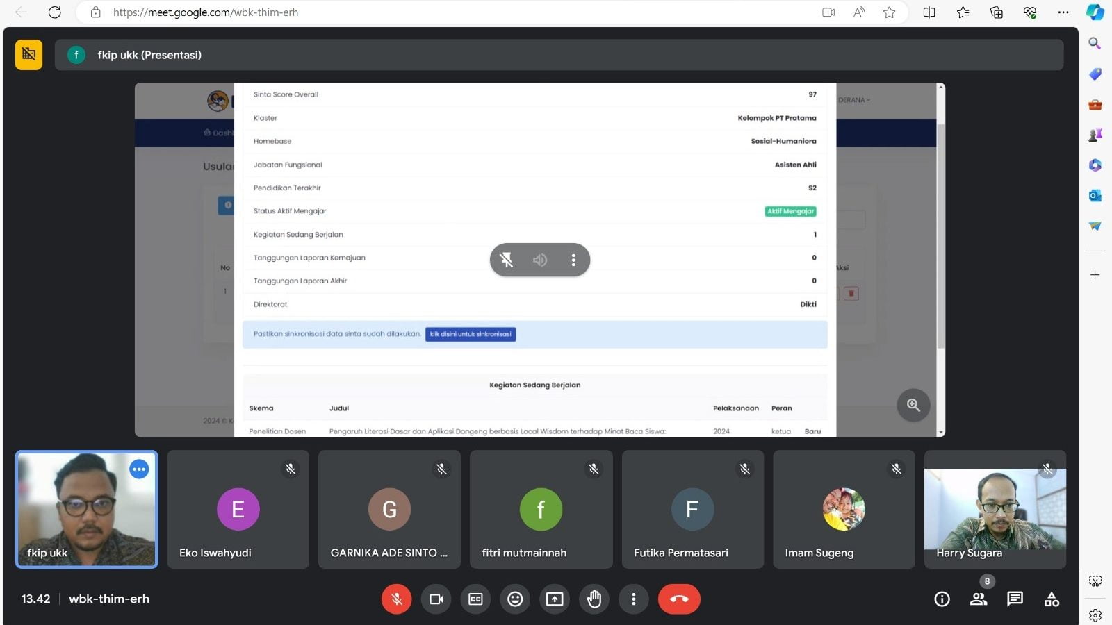 Sosialisasi Hibah Penelitian DRTPM Daring Melalui Google Meet: Dekan FKIP Ajak Dosen Aktif Berpartisipasi
